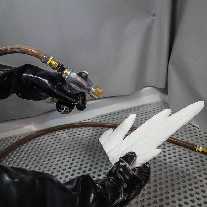 Im Gegensatz zum branchenüblichen Pulverbettverfahren wie SLS und MJF können beim Binder Jetting 100% das nicht verbaute Pulver, recycelt und wiederverwendet werden. Dies wirkt sich wiederrum positiv auf die Preisgestaltung des Bauteils aus.